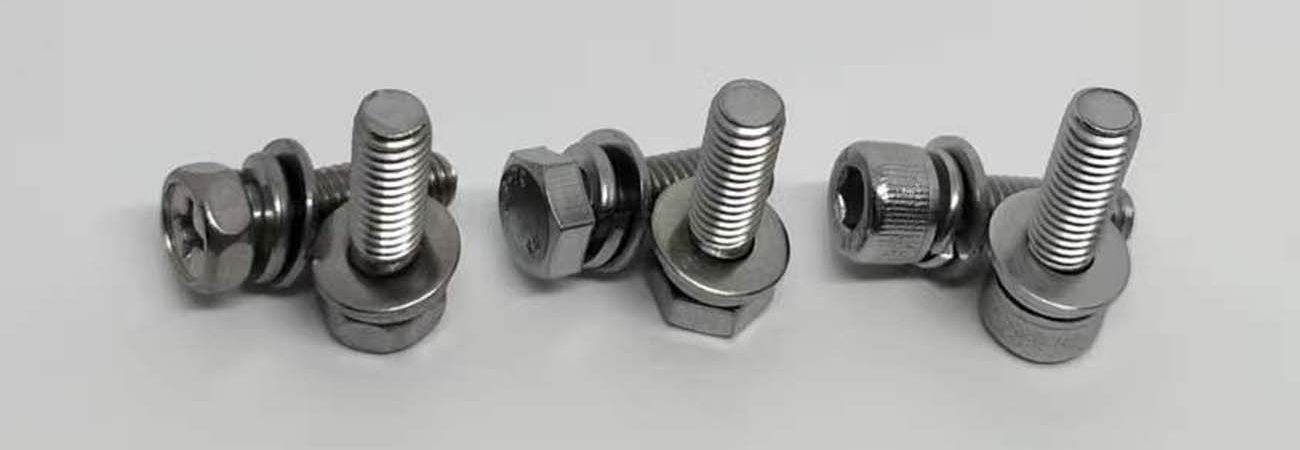 - 不锈钢无论是二组合还是三组合螺栓在装垫圈之前都会做到全检筛选,合格后才会进入下一个环节,这个也是必须做到的。要不然由于某个配件的瑕疵问题整个组合螺钉都废了,这样对于厂家来讲也是很不划算的事情。同时也大大提高客户使用时不用去考虑是否漏装垫圈等这些问题。